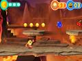 Aside from the change in perspective, the approach to the game is very different from the home console version, which offered a more linear experience. This game takes a page from the Mega Man series: Once you finish the first level, you can visit every other level in any order you want. Most of the stages highlight a specific power pellet type to use, and completion of the level permanently grants you access to that pellet type. You can revisit any stage with the new powers, but they're mainly used to unlock new paths and extras. The power pellets are different from the console game in that you have a set number from the beginning of each level. You can switch between powers at any time, which proves invaluable in the final stage, but each power has a time limit attached, and switching powers burns away any leftover time on your previous power.