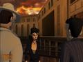 Graphically, the game is at a crossroads due to the two different styles it uses. The backdrops are done in a flat 2-D style that looks very much like a painting, with some framework sketches still visible in the colors. While the scenery isn't overly busy, it does a good job of blending movable objects with static scenery. Some games suffer from this, as it makes it painfully obvious what can and can't be interacted with. The character models are modeled in 3-D and done in a caricature style instead of a realistic one. It doesn't clash with the 2-D art much, and once you see enough characters, you'll get used to the style. What you won't get used to is how poorly these characters animate and act. Move them to a screen edge for a transition, and you'll see them walking in place as the screen fades to black. Some scenes have them caught in the scenery, such as when Christine leaves a building but gets stuck at the front door. Characters try to grab and manipulate objects that aren't in their hands, and watching their lips move while speaking is painful as they flap their lips without corresponding to their speech. There are enough of these gaffes that the overall visual qualities suffer.