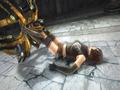 The joy of Deception IV is in placing traps that send the victim careening from one spot to another. For example, you can lure an enemy into a wall piece that impales him with spikes and drag the victim toward it. Then, the ceiling blade can push the enemy to the side while another wall piece launches a buzzsaw to push the victim forward. A pumpkin drops from the ceiling, forcing the enemy to wander blindly until he steps on a springboard, which launches him into an electric chair that provides a big jolt. Another wall piece can shoot an arrow while he's in mid-air, forcing him to land under a falling chandelier. In many ways, the game emulates a Rube Goldberg puzzle similar to Crazy Machines, but with a very violent and gory slant. Creating more complicated traps, using a specific trap, or luring people to a specific room gives you more currency at the end of the level, which you can spend on costumes, traps, and defensive abilities.
