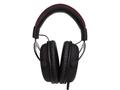 The minimalist design is striking to look at, with an overall black finish only broken up by the red HyperX logos on the sides of the ear pieces. The metal frame is wrapped in leather where it makes contact with your head and is finished in softly textured plastics. The signal cables for the ear pieces are separate wires coming from headband to ear piece rather than integrated into the band itself, though this means you'll want to be careful the cables don't snag on anything when you have the headset on the go. For as slight as the design looks, it is certainly not delicate and feels like it's intended to be carted around from one LAN party to the next.