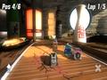 Table Top Racing comes equipped with five different modes, all of which are beefy in their own right. The main mode is Championships, where you have four different classes to work through that are spread across 16 tracks. Since the cars have a miniature theme, every track has you racing in some unusual environments, like a Japanese restaurant, a garage workbench, a picnic table, and a kid's bedroom, just to name a few. Each race is quick five-minute session, and your performance is graded on a three-star scale. The cash earned from each race can be used to upgrade your current vehicle or buy a new one, each with different stats.