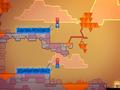 Upon playing the first level, you learn that the hook for platforming is simultaneous control. You have two on-screen characters to worry about at all times, but instead of controlling them individually with two analog sticks, you move them at the same time with just one stick. At first, both characters are separated by platforms, but you can move them both in the same direction and have them jump over pits at the same time. You can also swap the characters with the touch of a button; it's a useful tactic since the totems can only pass through energy fields of a matching color.