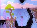 Compared to Press Play's previous work, Kalimba's graphics are pretty simplistic. The game is colorful but restrained; this is appreciated during the later levels, where you'll need to swap totem positions constantly and quickly. The animations are surprisingly stunted, so walking only takes up two animation frames, but the constant expressions on the totem faces make it acceptable. The camera is smart enough to know the appropriate time to pull back and when it's better to zoom in, so it never creates a situation where you miss a critical swap or have a poorly timed jump due to not being able to see all the important stuff on-screen. What solidifies the style is the fact that every element is composed of tiny triangles. Much like the use of voxels in Resogun, this allows for some fine particle movement, such as shards of dust when walking on the ground or walls dissolving walls when certain switches are hit. Seeing it in action does the effect justice, and though it is a minor thing, it makes the game look beautiful in motion.