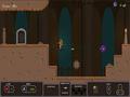 For the most part, your character is pretty simple to understand and deal with. You can run in any direction and double-jump to reach higher ledges. That's the extent of your mobility, though, as you can't duck, a trait that'll be missed as you progress in the game. You've got a dagger that has decent damage, and it can be thrown even though the range is pretty pitiful. You're tough enough to survive long falls, but one hit from an enemy, arrows from traps, or spikes will do you in. Once you spend all of your lives, the game ends, and you're forced to restart from the main hallway with your unlocked doorways intact.