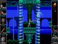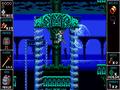 Elements from other adventure games are also present. You have currency in the form of orbs, which can be obtained from treasure chests or downed enemies. The currency can be used with a shopkeeper that you'll meet at various points in each stage. He only offers four items at a time that can range from weapons to extra lives, but the one constant is that prices are raised every time an item is purchased. You've also got a world map that does a good job of keeping track of your progress. Specifically, you can see how many secrets you've discovered per level and whether you've already killed the boss there. It allows for some easy backtracking when the time comes to do so. There are some parts of a stage where you'll depend on vehicles, and there are some water stages where survival requires you to constantly seek out air pockets, so you can jump and take a breath to reset the countdown timer.