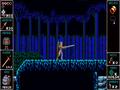 Graphically, the game completely embraces the NES look. There's a lot of black, a limited color palette, and loads of repeating tiles. Effects like falling snow come off as pretty simple-looking stuff, while the wavy screen when you're underwater shows some technical prowess. Backdrops are also multi-layered, but it feels more like a late-era NES title than something modern. Meanwhile, your character is decently sized with decent animations, while the monsters tend to use one unified color mixed with whites and blacks to give them a more grotesque definition. Adhering to authenticity, the game is even displayed in 4:3 ratio, with the extra space on the sides being used as placement for important information in the HUD. Except for the last part, this is easily a game that looks like it was made for a classic console.