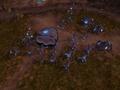 The campaign has you start off with the alien race known as the Beta, who feel rather human as far as units go. They have some bipedal robots at their disposal, but the main force consists of foot soldiers with Gatling guns. There's a bevy of aerial units and tanks in the lineup, and the tech tree provides upgrades for each one, though there is only one upgrade available for each unit. As for the epic unit, the ultimate one you get after completing a complicated plan, the Hand of Ruk, is very versatile. It moves slowly, but it has powerful base with plenty of room for units to jump in.