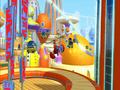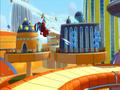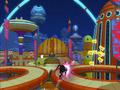 Aside from the standard platforming with and without those extra powers, you'll also play with vehicles in some areas. Some parts have you riding highway tubes to avoid traffic while you shoot ghosts. Other sections see your friends come through with vehicles that you can ride for advanced platforming. New to the game is the ability to control Cylindria and Spiral in their vehicles. They show up at times during some of the boss fights, your main interaction includes flying down levels as they shoot down their required quota of ghosts and avoid obstacles.