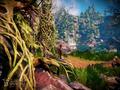 The second element that's not fully realized is the platforming. Early on, the game is quite adept in this department, mostly because there's nothing that is too challenging. By the time you reach the halfway point, though, problems arise. The lack of color separation leads to situations where you miss jumps or don't realize you've hit spikes that cause instant death. Landings become floaty, and heights are inconsistent. Cut scenes show Red jumping from high places, but if you attempt to do the same, she is badly injured or dies. Land on sloped surfaces, and she floats in the air until the game decides the ground is at the proper angle to land. The highlighting of ledges disappears later on, making everything guesswork in an area where most of the land lacks collision and the angle of the camera makes it difficult to determine how far you are from a land mass. The platforming goes from solid to frustrating quickly, and even though it goes back to solid ground right before the end, it's worrisome if the rest of the game depends heavily on this kind of gameplay.