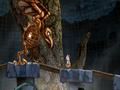 The playable opening in which you flee your pursuers may make you think that it is a pure platformer, and if that were the case, the game wouldn't really have the best of impressions. The controls are simple enough, since you can only run and climb, but the jumping can feel a bit floaty, and that creates situations where you perform long jumps in areas where short jumps are preferred. Your tendency to grab things automatically at an edge is fine, but your lack of fine-tuned control over the platforming basics leads to a few instances where you get caught through no fault of your own. It isn't completely broken, as you can still make it to the tower, but the floatiness doesn't give you much confidence at the beginning.