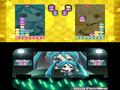 Beyond the main rhythm section, perhaps the most intriguing element of Project Mirai DX is the minigames. There's a themed version of Reversi (named Mikuversi), the classic board game where you must fill up the board with more of your colored tokens than your opponent. The difficulty options are customizable, and while this is nothing more than the basic game with your vocaloid expressing his or her emotions on the top screen, it is still fun to play. More fascinating is Puyo Puyo 39, Sega's classic puzzle game where you match four colored jelly creatures in a row in a restricted field. The versus game allows you to play against human players or against other vocaloids, and you must defeat every one of them on your journey to the top. There's an image of your vocaloid playing a concert at the bottom of the screen, and the musical accompaniment consists of actual songs from the game. Both games, despite their age, are fun and addictive enough that you might forget about the rhythm game for a while.