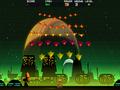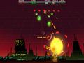 Despite the classic game influences, Cosmic Rocket Defender deviates from those formulas in more than a few areas. Your vehicle has an armor meter, so it takes more than one shot to down it. Borrowing from some of the shooters that came about in the late '80s and '90s, you also have a megaton bomb that you can use to blow up a number of enemies within the blast zone. Some enemies also drop items when destroyed, ranging from simple point bonuses to shields and the ability for a faster missile launcher. Cash is also dropped, and that gets used between levels to buy more abilities for your truck. You can buy extra speed for your missiles and make them more powerful when they hit. You can also buy extra weapons, like a laser and mortar shot, and you can refill your megaton bombs and armor before the next round begins.