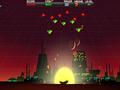 The obvious influence from the title is Space Invaders, as your terrestrial craft is charged with blowing up enemies from above. Just like in Taito's classic, enemies move back and forth in rows, moving down as they reach the end of the screen. Though the UFO still exists, there are no shields to hide behind, and enemies stay close to the ground at the end of their descent instead of ending the game. The title is also influenced by a few classic shooters of yesteryear. Just like in Galaga, enemies break formation and dart around the screen, most of them coming low to the ground before flying back to their squad. The game also borrows from the old Nintendo game Radar Scope, as the screen is presented in a tilt, complete with a visible grid to help sell you on the perspective.