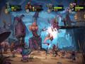 The last game that Zoink did, Stick It to the Man, was notable for its interesting graphical style. The completely flat character models and watercolor paints combined to generate a stylish and memorable look. That same style carries over here, and the results are the same, with the title looking rather good in cut scenes and during gameplay. All of the flourishes you'd expect, like impressive particle effects and solid frame rate, are here when you're going solo or with all four players in tow, and this time, it can be appreciated without the film grain effect of the previous title.