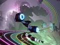 From a gameplay perspective, the Campaign mode has a few missteps. For starters, the ship choices have no bearing on the game. The differences are only aesthetic, and while it is nice that the lightbar of the DualShock 4 changes relative to the chosen ship, it would've been nicer if the ships had an effect on the gameplay. The game is also fond of straightforward progression, so you can't go back and fulfill the requirements to unlock the bonus songs unless you erase your progress and start over. Finally, the game throws out an unnecessary challenge in the final two tracks by distorting the screen with wavy visuals and ghosting with different colors. It may make sense as far as the story goes, but it makes those tracks annoying to play.