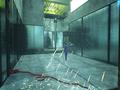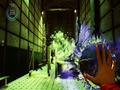 The jumping between time periods feels like it was borrowed from Singularity. With the press of a button, you can freely jump between the more pristine 2008 version of a lab and the caved-in 2014 version. As expected, this is mainly used for puzzle-solving and navigation, as you may find areas that are inaccessible in one time period are fully available in another. The same goes for some of your actions, as flooding a room in 2008 means giving yourself a hole to jump through in 2014. To prevent you from jumping into a surprise between periods, you're also given the power to peek between them, so you can see what's immediately in your view before you make the leap.