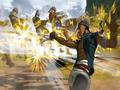 The sound is done rather well. The music evokes the grandeur of the series with a sweeping score for big battles and something more reserved but still powerful for smaller-scale affairs. The effects haven't differed from the main game series, so sword clashes and hits sound familiar. The vocal track is only in Japanese, which sounds great since the original anime cast is involved, so the acting is perfect for each character. However, there is a tendency for those voices to pop out of the controller speaker at the same time as they do from the normal sound system or TV speakers, creating an effect that is more distracting than inclusive.