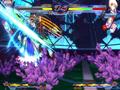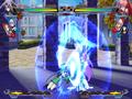 Nitroplus Blasterz also features a number of special mechanics thrown in to deepen the system. There's a combo breaker move that can be initiated by the press of a button, but it comes at the cost of one section of the power bar. The Variable Rush system lets you easily dish out combos without mastering move timing and proper inputs for each attack. The Vanishing Guard system is like an advanced version of the parry; hitting the evade button at the correct moment gives you a tremendous chance of a counterattack. You also have your two assist characters that can come in and throw down moves of their own, like a horde of zombies that run across the screen to hit the player, or a rain of missiles from the sky. Interestingly, the game resets all of the meters between rounds. It can seem annoying to lose a round with a full super meter and not be able to use that in the next round, but when you consider the speed at which you can rebuild the meter and the fact that a button can refill it, the loss isn't that big of a deal.
