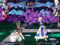 There are three major modes that Nitroplus Blasterz pays attention to. Story mode is very similar to the Arcade mode of most fighting games. You pick your main character, your two assist characters, and you go through eight fights before you wrap up your character's story path. The stories are serviceable, and the inclusion of cut scenes adds some meat to the plot. What is fascinating is that the difficulty level doesn't scale in the typical manner. The difficulty increases incrementally as each fight progresses, but you'll only notice when you reach the end, when things spike up considerably. Even then, you aren't going to quickly jump to an overly punishing fight, so meeting up with the end boss doesn't mean you'll be up against something impossible.