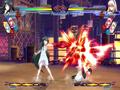 Graphically, the game looks quite nice. The character models for the main fighters look great, and they animate nicely in every situation. The support characters also look good, but their animations are more limited, so they're a little less impressive. The game does a great job with the special effects, and it also does well in rare situations where all six characters are on-screen with all of their abilities going on simultaneously. The backgrounds look fine, but it is here where you wish they broke away from the visual novel roots. With no moving elements, the stages quickly become dull and give you no reason to seek out a specific one.
