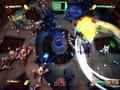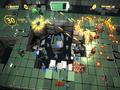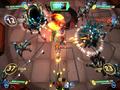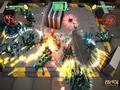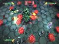 All of these elements combine to create an action-packed, tense shooter. The draining battery makes you want to work quickly, while the abundance of enemies means there isn't a moment when you aren't shooting. Even though you're basically fighting in arenas, the layouts are very different, with some being fluid enough to feature moving traps and whole stage chunks that rise and fall to spice up the action. Boss fights are rather inventive, and the game plays fair in terms of challenging you without feeling cheap about it. In short, the game feels fluid in co-op and solo.