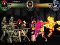 At its core, 2nd Encore is a high-tempo fighting game with lots of special moves for the 14-fighter roster and loads of high-combo opportunities. With a six-button layout and a secondary meter to unleash special moves, it doesn't do anything drastically different from the standard template brought about by the Street Fighter series. To make up for the two extra buttons not present on the Vita, the right section of the touch-screen is used as two different macro buttons for an easier way to perform moves that require multiple buttons to be hit simultaneously.