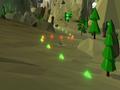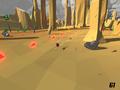 Graphically, PolyRace keeps things pretty simple by going for a very low polygon look. Rock and ground faces are made up of very visible triangles, as are some of the particle effects, like the emissions at the back of your craft. The shading has a nice color gradient, which contrasts nicely with the cel-shaded sky and horizon. It's a nice change from other indie titles that rely heavily on sprites or more advanced 3-D engines, and the lo-fi look means that a variety of machines can run the game at a solid 60fps.