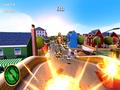 The lack of any real weapon damage and consistency also plagues the title. Once again, this favors the AI more than the player, as getting struck by missiles consistently puts you in a bad position compared to the AI racers that get hit. You'll get lucky at times and actively cause your opponents to mess up, but you also have an equal chance of having a weapon hit with very little effect. That consistency also plagues objects on the road; you'll hit a skater or sheep and be absolutely fine, but hitting a lamppost causes you to come to a stop and actually kicks you back a few feet.