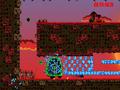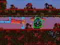 That infinite dashing and jumping is put to the test with the level design. The first few levels are pretty easy and small, making them perfect for tutorial stages. It doesn't take very long before the game starts to ramp things up. Narrow corridors packed with green blobs become more common, as do whole areas where smaller blobs jump around in patterns that leave you very little room to maneuver. Stages become larger and occupy more screens, but more things are added, such as Oktarus showing up to douse your fire before you can use it to thaw the ice. Stages start to require pinpoint precision, and while that means more frustration as you die for the umpteenth time, it also means elation when you finally conquer a stage that has been taunting you for so long.