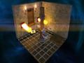 The title doesn't go for the complete retro look, but it also doesn't aim to be a showcase title for the system. For the most part, you're traversing a dungeon, and while the textures look absolutely clean, there's not much to really get excited about. The lack of creatures means you're the only character in the game, and you move well enough despite being rather short and stocky. The rooms take advantage of the hardware by being rather sizeable, and there's plenty of light and shadows. There's also slightly too much lens flare when something bright happens on-screen. Despite this, the game still looks rather striking since you're essentially in a series of rooms floating around a static space background. It looks rather strange at first, but you'll soon appreciate the eerie atmosphere. While nothing spectacular comes from this, it's a better option than a pure black backdrop.