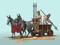 Unique unit (War-Cart): The constant conflicts between Sumerian city-states helped spread several war innovations throughout the ancient world, one of which being the War-Cart. This cart – a crude woven basket atop four sturdy wooden wheels - was pulled by donkeys and crewed by two warriors wielding battle axes and lances. Even though the War-Cart’s existence has gone undisputed, its purpose has not; some believe it was used in combat, while others believe it was simply used to ferry warriors to the place of battle.