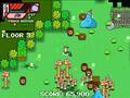 The presentation is fine in certain areas. The pixel graphics for the characters and the environments are good, but the more impressive part is that they can fit loads of characters of all sizes with no slowdown, even when tons of other particle effects are in play. The small body parts that fly off when blasting a horde with a really powerful gun are a nice touch, and the blast from more powerful guns is cool to see, even if it obscures portions of the map. The music starts off in chiptune but ventures into generic action territory after that. The audio is not terrible, and it gets the job done.