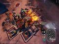 The rest of the game adheres to the same mechanics that made the first one a good fit for RTS console players. Bases can only be constructed in specific spots, and attachment buildings are given specific spaces connected to the base. Bases differ between smaller ones, which have one or two extra slots for buildings, and larger ones, which can accommodate at least five attachments and four turrets. Everything from building and leader power choices use a radial design that works well with making quick selections with an analog stick. Each of the menus gives you both unit choices and relevant upgrades, so there isn't much menu juggling to be done.