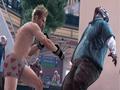 A good two-thirds of the survivors you can rescue don't seem to understand or appreciate that they're in a dangerous situation, and many ask for outright bribes before they'll agree to let you rescue them. The various psychopaths that serve as the game's boss fights include an obese furry with a giant pink chainsaw, a disgruntled postal worker (a "joke" that was about 20 years old when the game was first released, let alone now), and a pair of insane magicians who appear to be the demented love children of Penn, Teller, Siegfried, and Roy. There's no real theme, aside from how many of them seem to embody some vague element of Las Vegas casino culture, and most of the jokes don't really land.