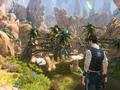 Exoplanet bills itself as a single-player survival, story-based, third-person, action RPG with a Space Western motif. It seems like a mouthful, but it isn't that intimidating once you get your hands on it. Action occurs in real time with either melee or projectile attacks, and they control the same as in any other game. Killing foes always nets you XP, and you will level up, but the benefits of doing so aren't immediately apparent. You'll get quests along with multiple dialogue choices when meeting up with people, but don't expect morality choices to accompany that. As for survival elements, the basics like sleep and hunger are there, and you can cook meats and craft new items from what you've gathered.