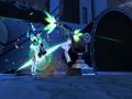 At first glance, the graphics look fine. The environments stand out mostly because they have a nice uniform color, and the models for both characters and enemies look authentic, though they're missing some detail here and there. It doesn't take long before that perception is broken and only decent animations are provided. Both textures and shadows tend to stream in as you're moving, so there's a constant update of detail just a few feet in front of you. It also doesn't help that some textures are so bad that they appear as nothing but pixels. There's not much lighting to speak of, so the game has an overall flat look that neither mimics the source material nor elevates it.