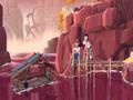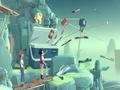 First of all, time has seemingly stopped; the world remains static along with Arina and Frendt — until players move, that is. By moving right, the boy and girl begin their ascent as time progresses; by moving backward, time reverses, as do the teens' movements as they backpedal down the mountain.