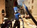 Combat within the game is fairly smooth, albeit basic. The whip and melee weapon combination provides quite a few possibilities to engage with enemies. Players can use the whip to stun enemies by hitting them on the head or whip the weapon out of their hand. I felt very much like Indiana Jones when I used the whip on enemies' legs to trip them up or pull them into a trap. It offers mobility to players as well, allowing them to swing from various rings that hang high above the city. The whip has quite a bit of diversity to make up for the very basic melee attack, which is assigned only to one button. Players can also push enemies out of the way in case they're trying to breeze by on a speed run. Attacks worked well, but combat felt very limited considering enemies had the ability to dodge and counter attacks while the player did not.