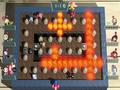 At the very least, the presentation is good enough. The graphics are fine, but the shadows are a very low resolution, with jaggies appearing at every opportunity. The frame rate is solid throughout, while the particle effects are at a minimum; it's a curious choice, since the game is all about explosions. Character designs are good, since they follow the old aesthetic, but the environments lack any pop, so everything feels homogeneous. Meanwhile, the music is lighthearted fare, and the voices are good. The effects are also fine if you dismiss the lack of thunderous bass that should be present from all of the bombs getting detonated.