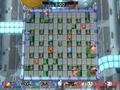 The meat of the game is in the multiplayer, which is where you'll find the now-standard gameplay of a modern Bomberman title. Aside from the gimmicks of certain playfields, like having pits or large structures that temporarily obscure your viewpoint, the arenas are perfectly symmetrical. Old power-up stand-bys, like kicking and punching bombs, are still present. Revenge carts allow fallen players to return to the fight, albeit without all of the powers they had when they blew up the first time. Aside from the standard arenas, the game also features a Grand Prix mode, where six players are split into teams with variations that involve gathering items or gaining points by holding down marked territories.