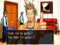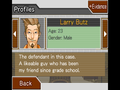Due to the format of the game, the gameplay mechanics in Ace Attorney are relatively simple and generally well executed. The format of each trial is similar: You begin by learning about the crime and meeting up with the defendant to hear their side of the story. From there, you move from area to area, speaking to others involved with the case (witnesses, officers, etc.) and exploring the areas you're visiting, gathering clues along the way to progress the story. Once you've gathered everything, you cross-examine witnesses in court, pointing out contradictions using the evidence you have at your disposal. Unlike baseball, it's five strikes and you're out. This cycle repeats a few times for each case, you (hopefully) get your client acquitted, and start the next case.
