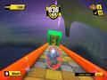Visuals in Banana Blitz HD are bright and bubbly. Levels vary in theme and scope, from the easier island levels to the more challenging desert and pirate levels. Each world has its own visuals and feel. The different colors and styles of the levels are nice, but what creates such distinct and interesting visuals are the skyboxes for each world. For example, the Smooth Sherbet world boasts snow-laden evergreens and icy white and blue tracks supported by an amazing aurora borealis background peppered with tiny white snowflakes. This creates a color-infused, fantasy-adjacent winter wonderland for your monkey to soar through. While not every world may have this amount of childlike wonder injected into its aesthetics, they all come pretty close. Likewise, the characters reflect this whimsy; the monkeys are all charming, while the enemies are a fine balance of cute and intimidating. From the soft borders to the bright, bold colors and the portrayal of different worlds, Banana Blitz HD has incredibly consistent visuals that bolster the gameplay's cartoony fun.