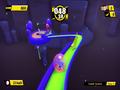 Similar to the aesthetics, the music in this iteration of Super Monkey Ball is bursting with enthusiasm. This is clear from the get-go, with the menu sporting jaunty interwoven brass and steel drum melodies with an equally driving rhythm section. In the same way that the world design melds the visuals and feel, so too does the music. One of the best examples of this is the Pirate's Ocean world, which departs from the other levels musically by being more morose and intriguing, but in a fun way — think of Yoko Shimamura's Halloween Town and Neverland world music from Kingdom Hearts. A darker color palette and more intimidating enemies enter the game at this point, and the gameplay becomes more difficult; the music takes the appropriate tact by being a little spooky but fun. It's this attention to the gameplay and aesthetics that makes the music fit so well; while they may not be the most powerful pieces of music on their own, they zero in on the tone of the game and build that feeling within the player.