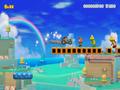 - Multiplayer Versus – Four players face off in a side-scrolling showdown in this online multiplayer mode. Each player will be assigned a different character, then race each other in a randomly selected course. The player who clears the course first wins and increases their Versus Rating.