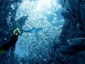 Abzu's art style is colorful but simplistic in its polygon count. At the same time, models are incredibly detailed, given their simple nature. From fish to whales to sharks, your encounters with some of the biggest underwater creatures are the most memorable thanks to Abzu's very good sense of scale. It knows how to create atmosphere from its simple patterns and designs. Swimming through a dense "forest" of sea plants to come face to face with a large sea creature is astonishing and breathtaking in the way it's constructed and executed. Swimming with swarms of fish in ridiculously fast water currents and jumping through the air with a pack of whales is equally exhilarating. We'll also swim through plenty of quiet caves and underground structures as we take in the scenery and try to find our way around.