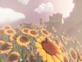 As you progress, the levels expand in scope and intensity. The word "joy" splashes across the screen as you find yourself in a wonderland of extremes, trying to catch a kite that the younger version of yourself lost to a powerful gale. Flowers bloom and tower over you, bees meander, and spider webs are woven and unwoven as time spins at your control. Sharing art styles with games such as Human: Fall Flat and Gangbeasts allows the narrative to largely speak for itself. The lack of definition allows the player to build a rapport with the character and buy into the whimsy. Sunlight spills through the cracks of the vegetation, dulling and brightening the green grass as you stand atop a mushroom. Meanwhile, the water and flowers bounce in time with the changing winds, easily and handily filling the player with the aforementioned joy. Sunflowers serve as platforms that wax and wane with the flow of the sun over time, and your man bounces along until he finally reaches the peak of the level. After soaring through the cloud on the kite tails, his younger figurine is cloud-watching with a little girl by his side; the old man allows himself a small respite after miles of trekking.