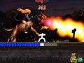 While the presentation in the first game was very simple, the second title has improved in a way that doesn't betray the simplicity of the original. Graphically, the backgrounds remain detailed, a stark contrast to your simple stick-figure character and your equally simple stick-figure opponents, who spew excessive amounts of blood and sport fast animations. The other special effects, like the flames from your special abilities or some of the special kills, aren't spectacular on their own but look nice when compared to the game's simple aesthetic. As for the audio, the only voice you'll hear is that of an old martial arts master who skirts the line of sounding stereotypical. Most of the attention will be paid to the soundtrack, which does a great job of getting you in an action movie mood, despite featuring a number of different genres.