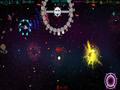 The game comes equipped with five different modes, three of which can be played either solo or with a friend in co-op. Save the Colony has you floating around space trying to rescue astronauts and putting them into a warp gate to go home. The trick is that your ship can only hold one person at a time, so you'll try to rush between depositing people and picking up the next person before they get killed at the edge of the screen. Survival has you staying alive as long as possible to fight off the big boss, but it is Protect Mother that is the most fascinating mode in the game. There's a big mothership at the bottom of the screen, and your job is to protect the ship for as long as possible. It isn't entirely defenseless, however, as the ship has guns that can be fired manually to give you power-ups. It is by far the most difficult of the three solo/co-op modes, but it's also the most exciting, since no other shooter offers something like this.