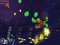 The overall presentation leans on both sides of the quality spectrum. Graphically, the game is quite clean, and while some elements (like asteroids) might not stand out well against the small variety of backdrops, everything else is painted in bright colors, so it's easy to tell bullets from coins to enemies. Audio is where the game falters, as the music for the title screen doesn't fit the theme, and the lone music track for each level gets tiring rather quickly. Only the sound effects save the player from placing the game on mute.