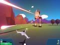The presentation is going for something reminiscent of the team's previous title. Whisker Squadron is purposefully low-polygon, with some flat shading and minimal textures to give it a colorful yet minimalist feel. The frame rate is high until you start using triple missiles, while the portraits show off a colored manga look. The music is quite good, though the lack of voices stops the game from feeling completely like StarFox. This is a very early demo, so there are a few rough spots that you can't help but notice, like the pop-in that occurs when objects are far away and the overall scarcity of options.